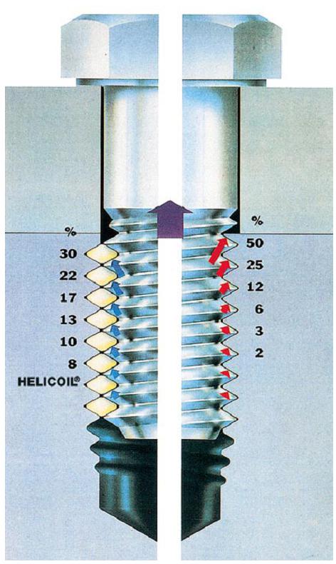 鋼絲螺套增加螺紋連接的承載能力和疲勞強度:鋼絲螺套使螺釘與安裝鋼絲螺套的內螺紋底孔之間形成彈性連接,因而消除了內螺紋之間的螺距和牙型半角誤差,可在規(guī)定的長度上使每圈螺紋上的負荷均勻分布,從而加強了內螺紋,并能減震,因此可以提高螺紋連接的疲勞強度。